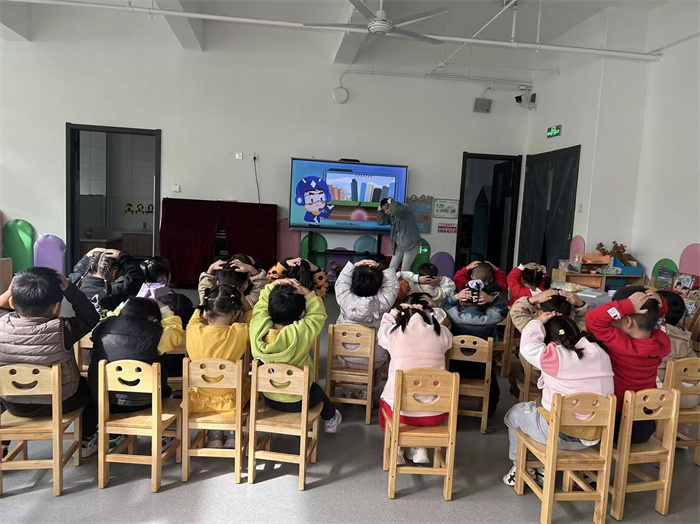 第一阶段警报响起“避震”,上午9点30演练正式开始,各班教师组织幼儿活动时,听到了第一阶段地震预警警报响起,立即进入紧急避险状态。“地震啦!大家快躲到安全区域!”孩子们在老师的指导下迅速抱头、蜷曲身体,躲到桌子底下或墙角三角安全区域。